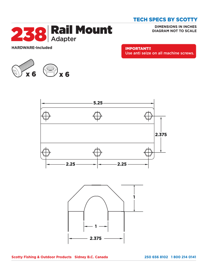Technical specifications (.pdf) for the 238 Rail Mount Adapter product.