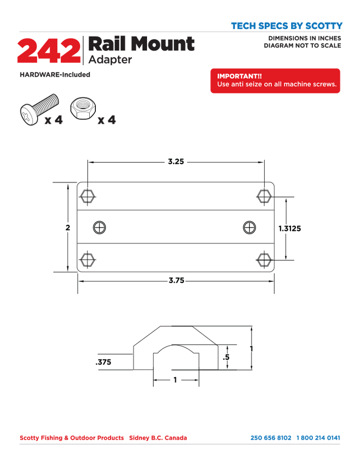 Technical specifications (.pdf) for the 242 Rail Mount Adapter product.