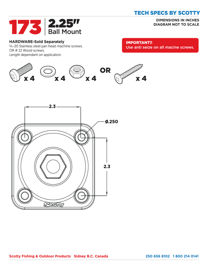 Technical specifications (.pdf) for the 173 2.25″ Ball Mount product.