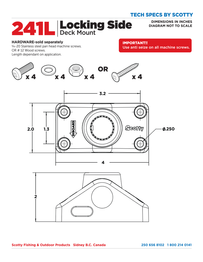 Technical specifications (.pdf) for the 241L Locking Side Deck Mount product.