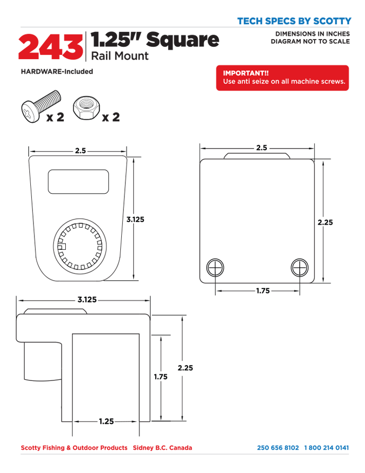Technical specifications (.pdf) for the 243 1.25″ Square Rail Mount product.