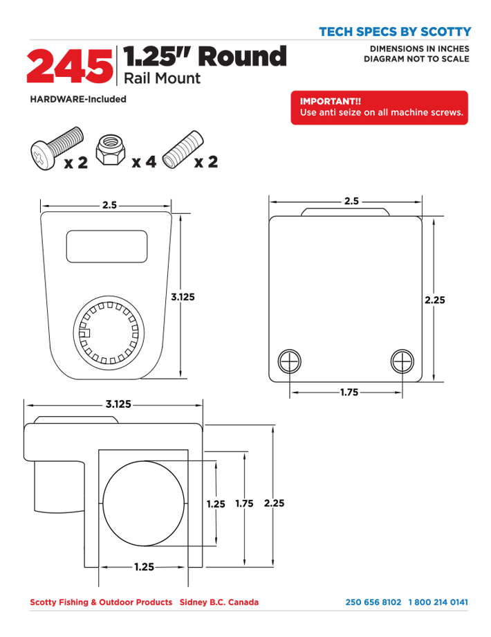 Technical specifications (.pdf) for the 245 1.25″ Round Rail Mount product.