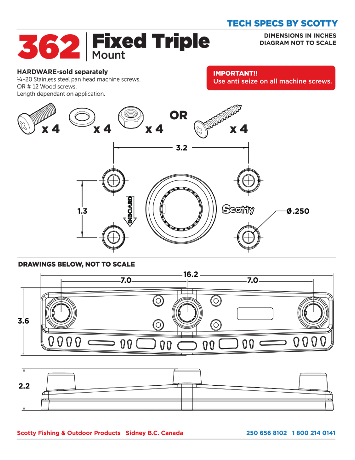 Technical specifications (.pdf) for the 362 Fixed Triple Mount product.