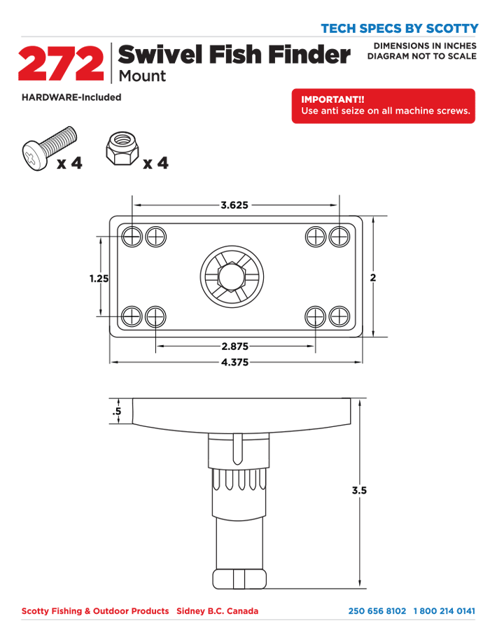 Technical specifications (.pdf) for the 272 Swivel Fish Finder Mount product.